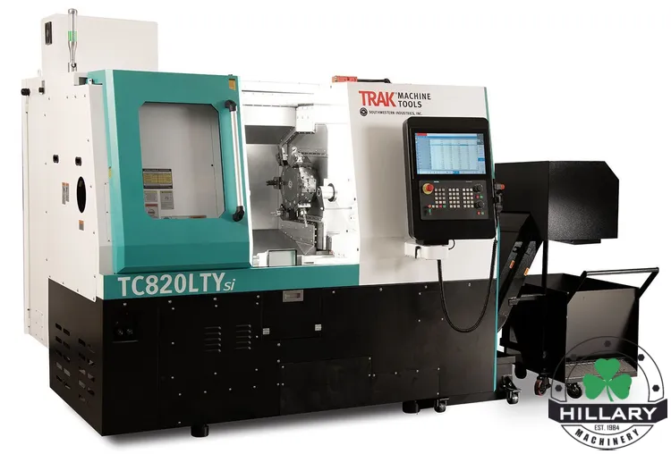 Discover the new TRAK MACHINE TOOLS TC820LTYsi multi-axis CNC lathe, featuring an 8-inch chuck, 2.56-inch bar capacity, and a 38 hp motor with 4,000 RPM. Enjoy 15.75-inch swing, 8.66-inch turning diameter, and 19.26-inch turning length with a tailstock.