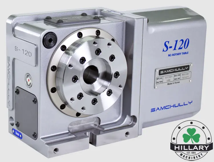 Samchully stand-alone 124mm (4.88") rotary indexer includes an M-code / RS-232 programmable Samchully Neo-Con controller.