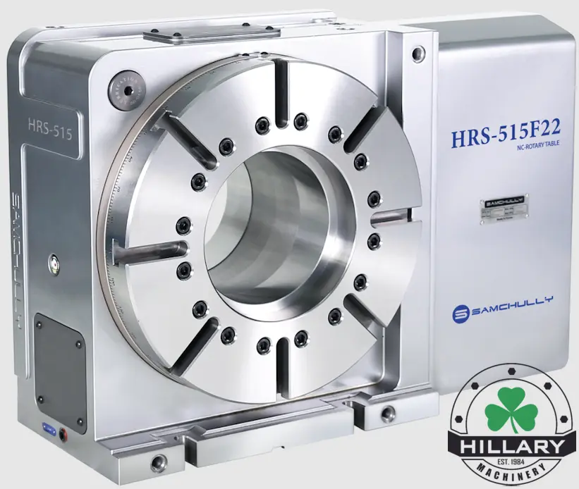 SAMCHULLY HRS-515 4th Axis Rotary Table Indexer: Enhance your machining precision with this new 20.39" NC rotary table. Perfect for complex tasks, featuring a max hole diameter of 10.39". Ideal for various industrial applications.