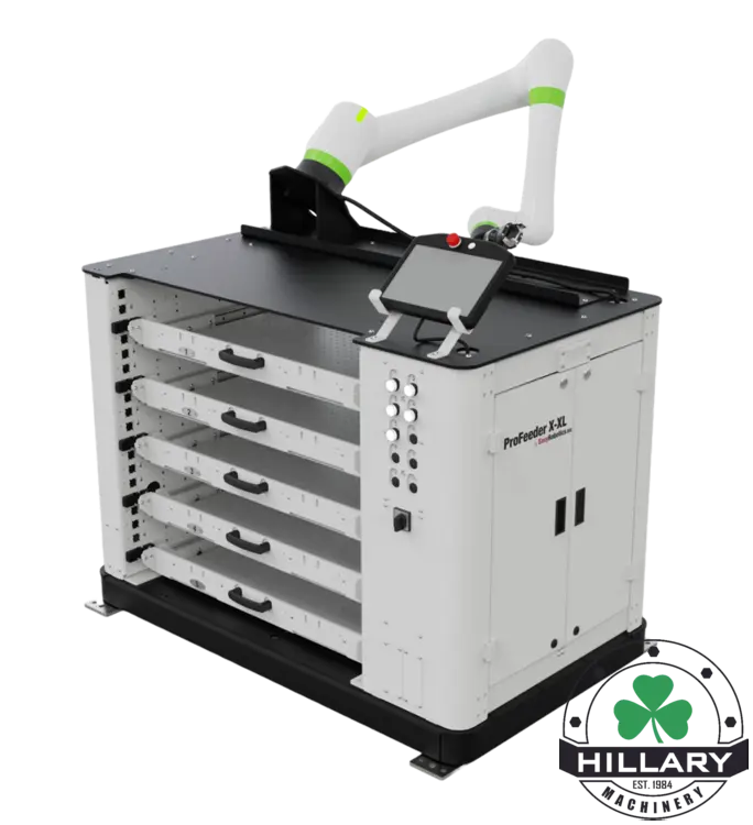 Offered with the Fanuc CRX-20iA/L COBOT (optional Hanhwa HCR-14 ) as a DIY or fully turnkeyed with application engineering, installation and integration to a new or your pre-existing CNC(s). Holds hundreds and hundreds of billets for extended unmanned operation.