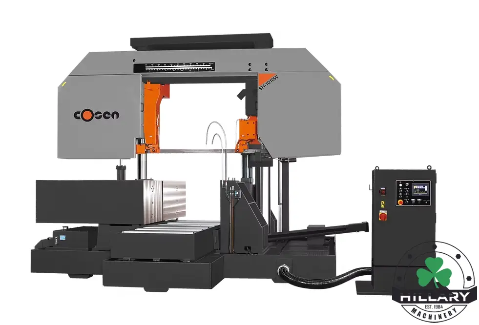 COSEN SH-1010W, a new horizontal dual column band saw, offers precision with its 39.4" round and rectangular cutting capacity. Powered by 15 hp, it features a 370" blade length, perfect for industrial tasks. Semi-automatic for balanced control.
