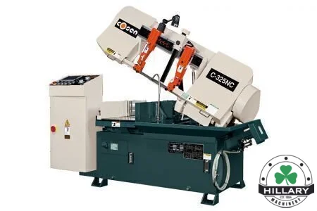 Introducing the COSEN C-325NC Horizontal Band Saw. This new, automatic powerhouse features a 5 hp motor, 150" blade, and handles up to 12.8" rounds or 12.8" x 15" rectangles. Ideal for precise and efficient cutting tasks.