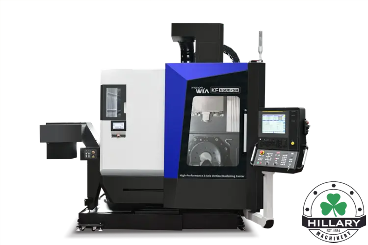 Discover precision redefined with the new HYUNDAI WIA KF6500/5A 5-Axis Vertical Machining Center. Featuring a CAT40 (BIG PLUS) spindle, 25 hp, and a 12,000 RPM range (Optional 15K and 20K), this machine provides X, Y, Z travels of 25.6", 20.5", 18.9" respectively.
