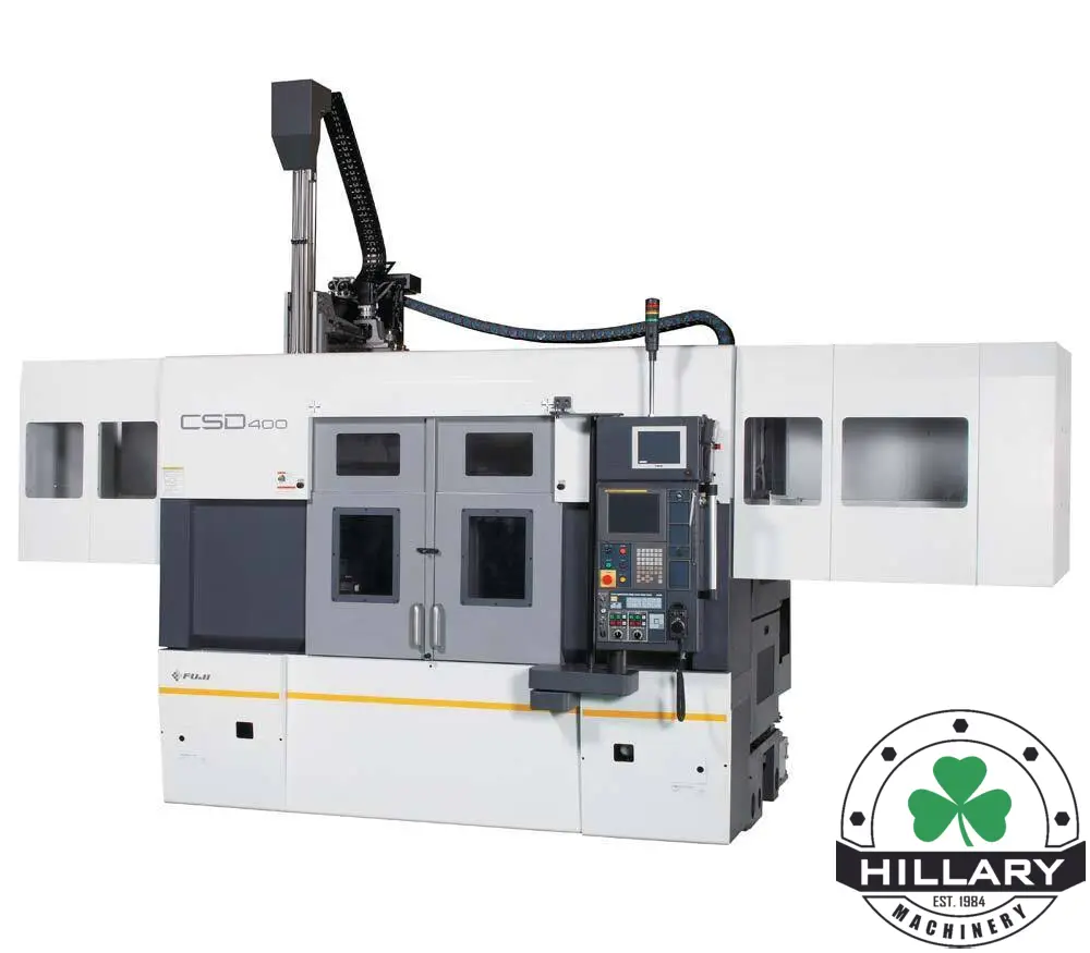The CSD-400 Twin Spindle Lathe features parallel twin spindles and both Z- and X-axis box way slides for heavy cutting, superior surface finish and longer tool life.