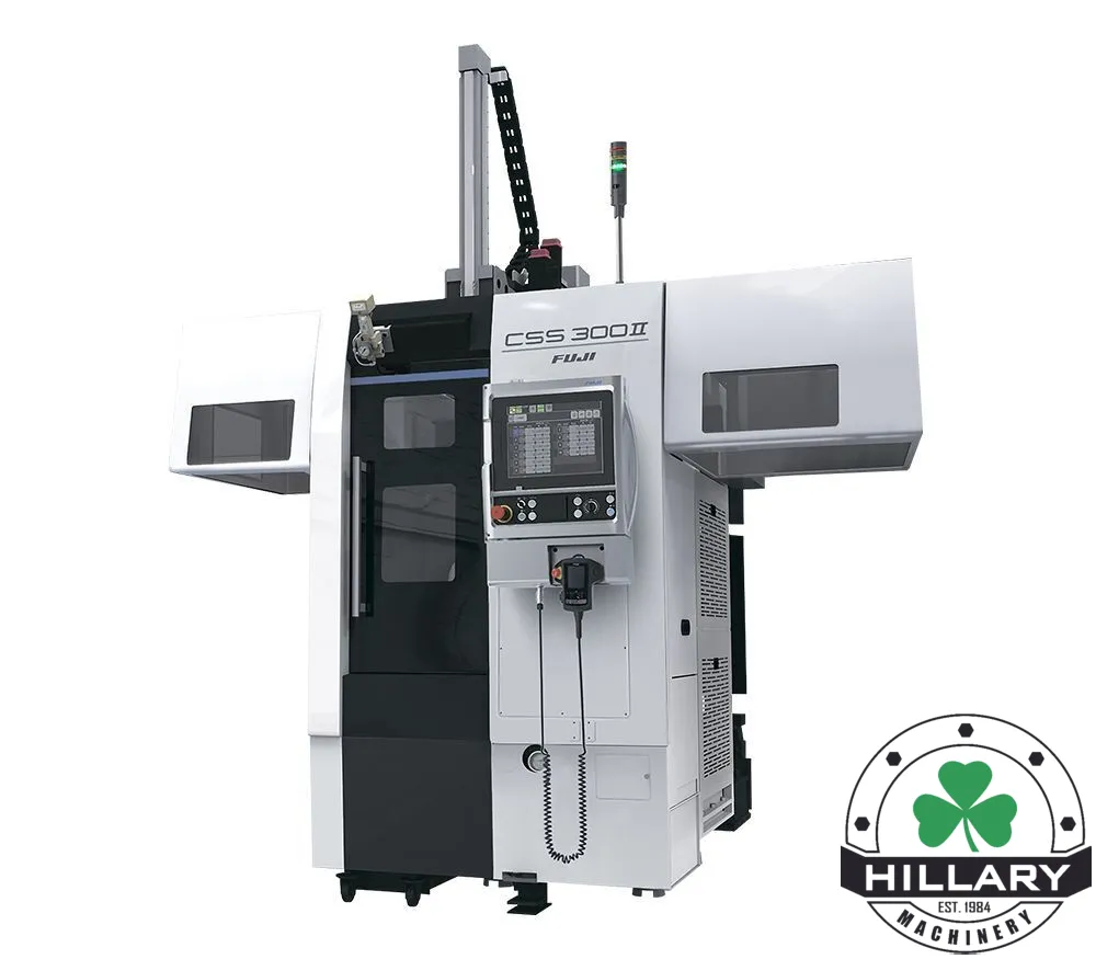 This robust lathe performs with extremely rapid robot traverse and turret indexing speeds. Equipped with a custom HMI and a single integrated Fanuc control panel, the CSS-300II enables convenient operation and setup of the machine and robot.