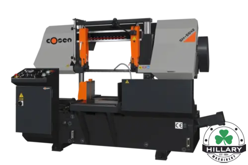 COSEN SH-5542 Horizontal Dual Column Band Saw, new, boasts a 16.5" round/rectangle capacity, 7.5 hp power, 209" blade, and a 1.5" width. Ideal for precision tasks with semi-automatic operation. Perfect for industrial applications.